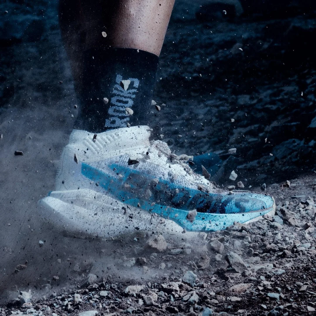 Hoka bringt den Spirit der Straßenracer auf den Trail. Bestätigt sind ein leichtes Mesh-Obermaterial, eine zweilagige A-TPU-Superfoam-Mittelsohle, eine H-förmige Carbonplatte, eine leichte Außensohle mit 3 mm Stollen sowie eine Sprengung von 6 mm. Das angegebene Gewicht liegt bei 9,45 Unzen (ca. 268 Gramm) in US Herren 9. Der Schuh ist auf der Hoka-Seite mit einem Preis von 225 € gelistet. Erste Tests ordnen den Rocket X Trail klar als schnellen Schuh für laufbare Trails und Schotterpassagen ein. Die Kombination aus hoher Dämpfung, aggressivem Rocker und flacher Stollenhöhe ist ideal für Kurse mit hohem Tempoanteil, während sehr technisches, nasses Gelände nicht das Spezialgebiet des Schuhs ist.